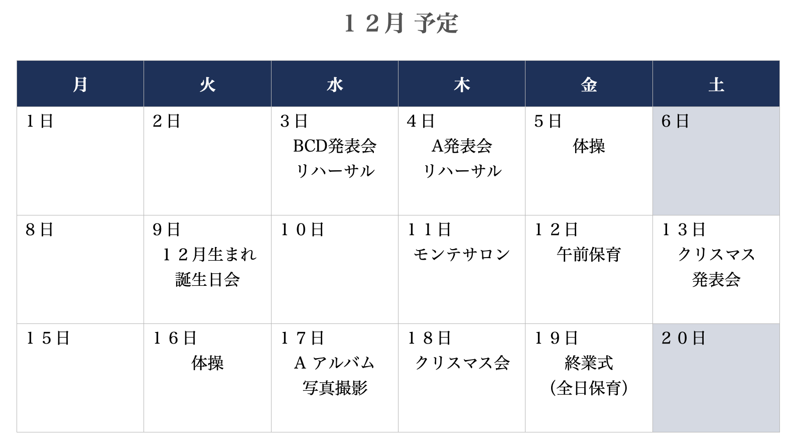後期についても週に1~3回(10時から12時までの保育)の希望回数で募集しておりますが、人数の調整等もありますので、いちど幼稚園にお問合せ頂き、その後に週の回数と曜日をお伝えさせていただきます。